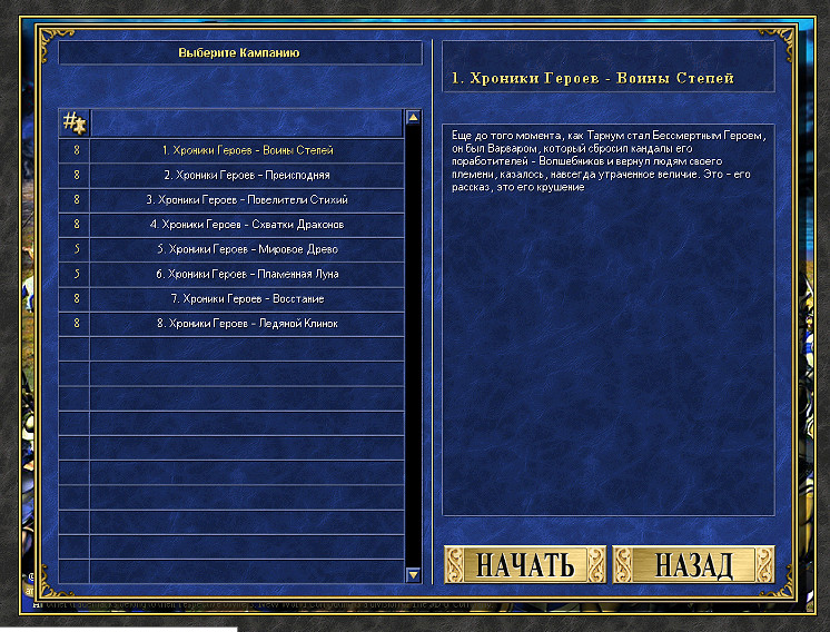Появится список всех кампаний Хроник Тарнума.