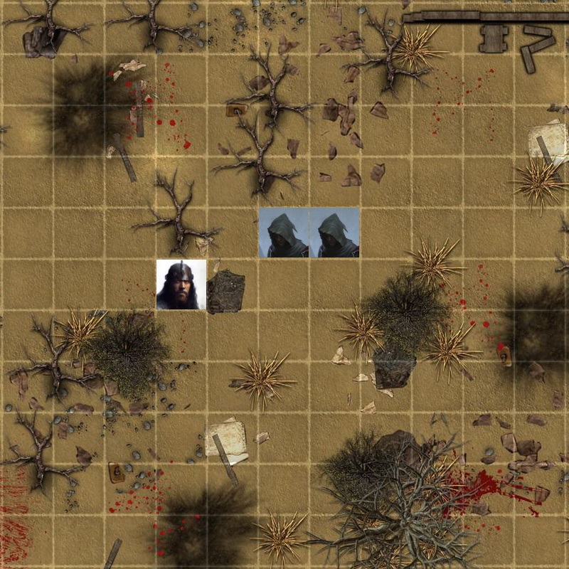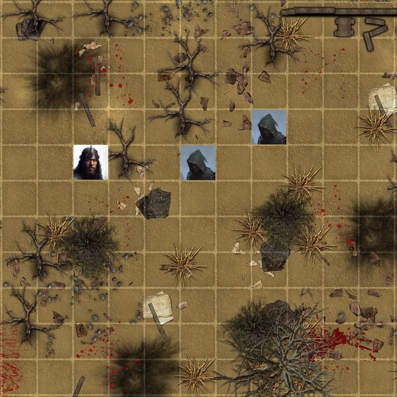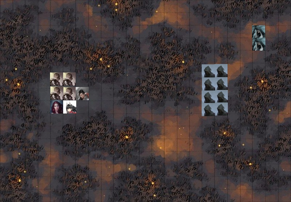 Реван управляет перемещением и атакой для всех персонажей со стороны Бурого Знамени, кроме Сирин. У всех скорость 3. Капитан ходит дважды. Внимательно следим за порядком хода. Цена хода сквозь союзника 2 + еще 1 на то чтобы занять клетку за этим союзником. В первом раунде не ожидается атак, так что можно писать движение для всех своих разом.