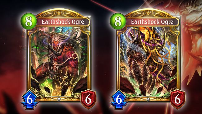 Earthshock Ogre (Neutral), Ability text — Fanfare: Deal 3 damage to an enemy. (Evolved Text — Evolve: Deal 3 damage to an enemy.)