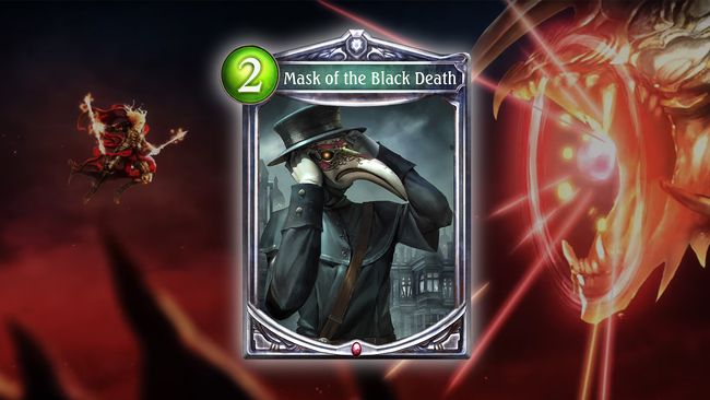 Mask of the Black Death (Bloodcraft), Ability text — Countdown (5) Whenever your leader takes damage, reduce the damage to 0 and subtract the same amount from this amulet's Countdown instead. (If there is more than 1 allied Mask of the Black Death in play, subtract this amount from the Countdown of each).