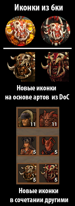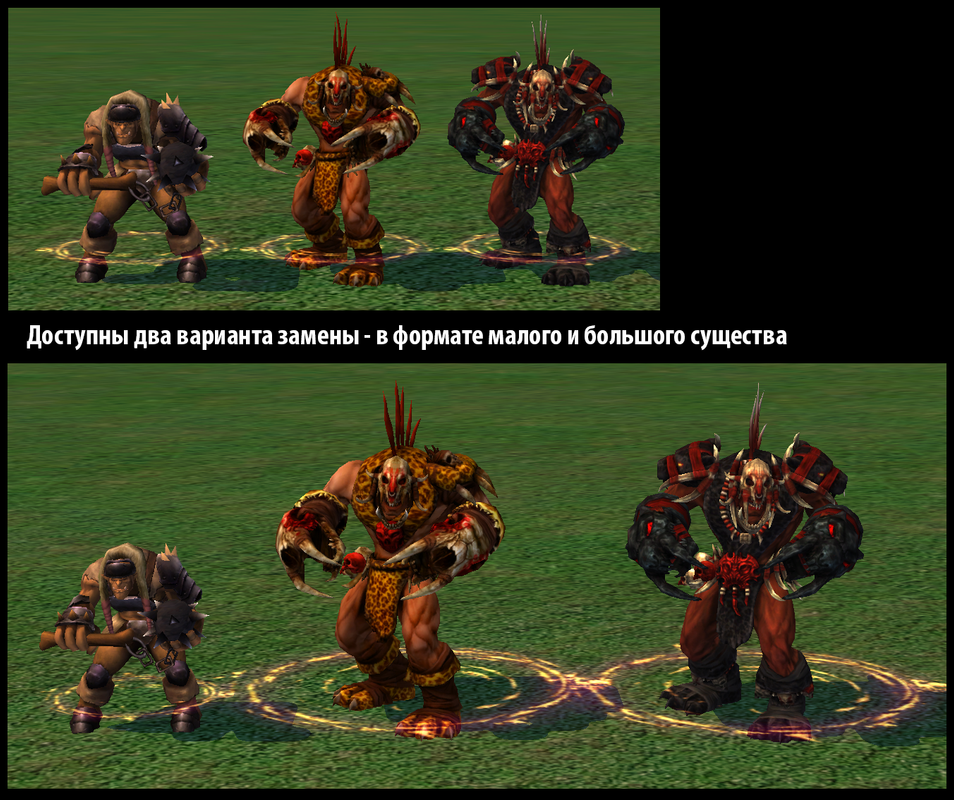 Замена 5го тира орков из 5ки на вот этих чуваков из 6ки. Характеристики остались прежними. Есть две версии, в формате большого и малого существа.