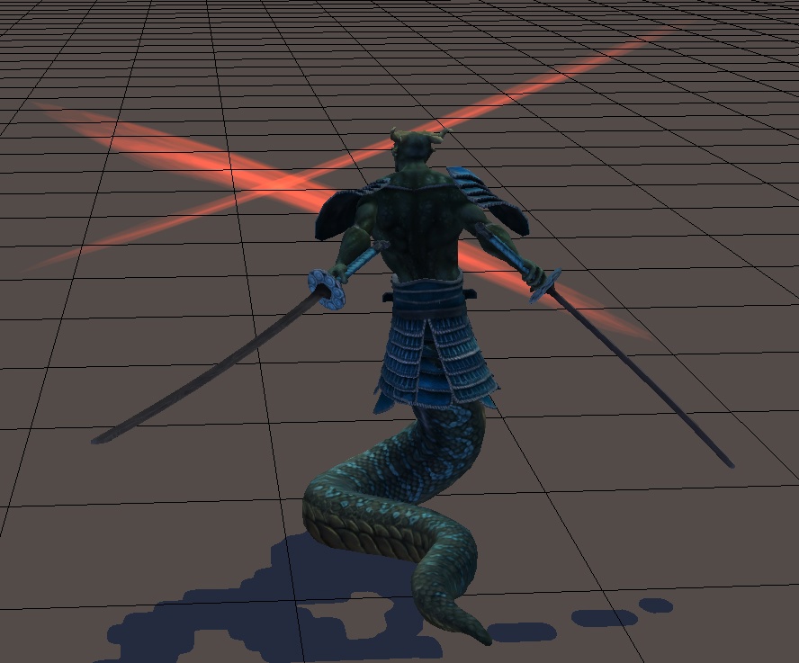 Вы наверно замечали что у импортированных моделей часто криво работает импакт от удара. Дело в том что импакт задаётся через особые теги в анимации, к сожалению очень мало кто умеет импортировать анимацию в игру так чтобы потом эти теги сохранялись. Я вот не умею. Обычно я решаю эту проблему следующим образом. Режу и изменяю саму анимацию атаки, подгоняю под примерный тайминг удара который без тегов находится на кадре на 58% от продолжительности анимации. Т.е. 58й кадр для анимации длиной в 100 кадров и т.д. Но вот что делать если в анимации атаки у существа не один а два удара? Тут уже возникает проблема. vova2112 помог решить эту проблему и улучшить порт копейщиков, за что ему большой респект.