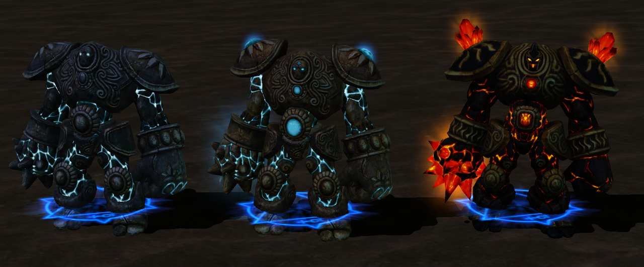 В чём обновление? После некоторых танцев с бубнами, материал големов теперь соответствует материалу новых титанов. Есть металический блеск и свечение, при смерти юнита свечение пропадает.