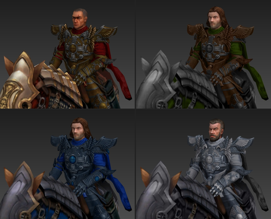 Там всё разделено по слоям и можно легко перекрасить в нужный для вас вариант. например сделать броню чёрной а нитки красными и так далее. Плюс можно посмотреть как я делал отрендеренный свет и использовал карту нормалей.