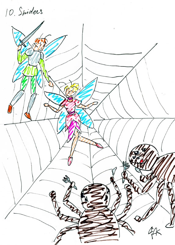 Если бы я рисовал эту сцену, я бы сделал наоборот, как доблестные рыцари в сияющих доспехах идут в поход на хтонические чудовища. У одного огромный окровавленный хобот, другое чудище всё в чём-то измазано и запуталось в верёвках. И один из рыцарей кричит "Скорее, моя ловушка его надолго не удержит!". К сожалению, воинам не суждено было выжить в тот день, они погибли, сражаясь за то, чтобы человечество по ночам могло спать спокойно (без жужжания в ухо там).