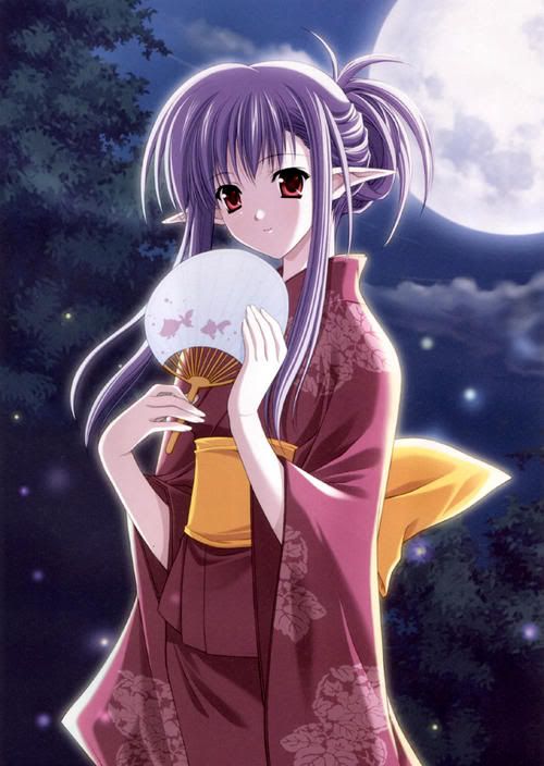 Как ни странно, мой любимый женский персонаж аниме тоже с эльфийскими ушами, с веерком, и в кимоно.