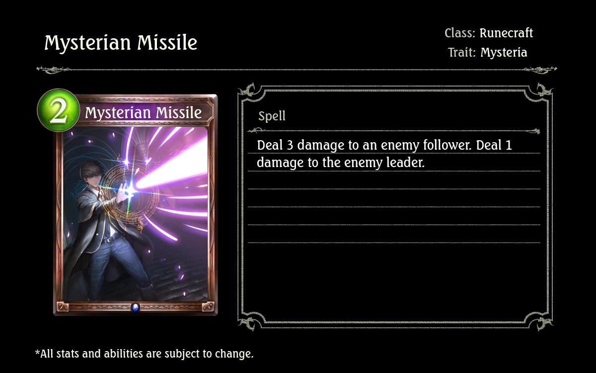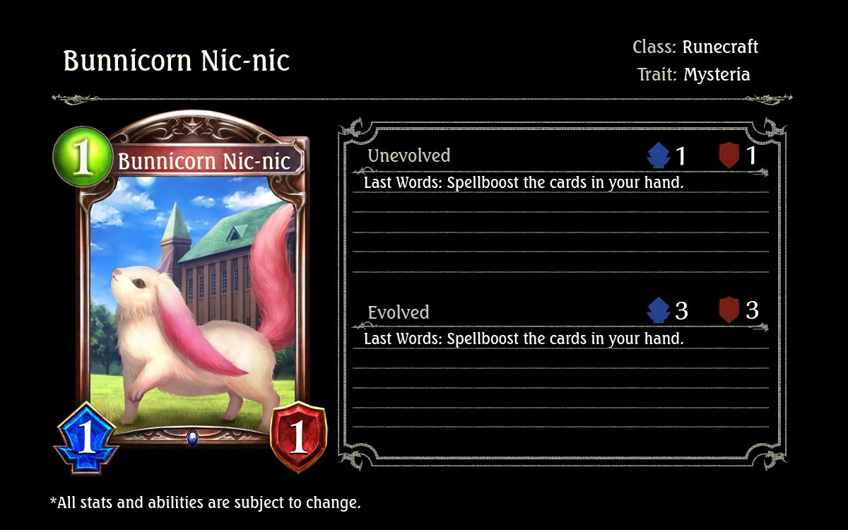 3 cost 2/2 > 4/4 Whenever a Mysteria card is played and your board does not have a Mysteria Beast Nick, summon a Mysteria Beast Nick.
