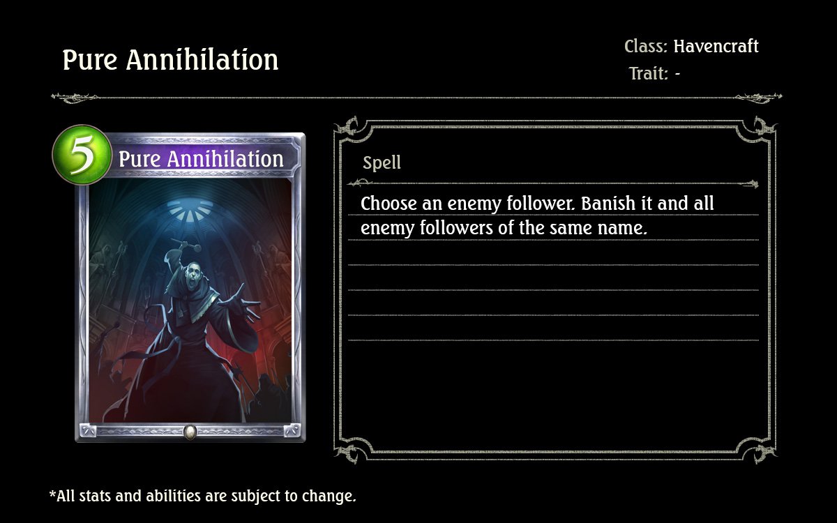 Choose an enemy follower. Banish it and all enemy followers of the same name.