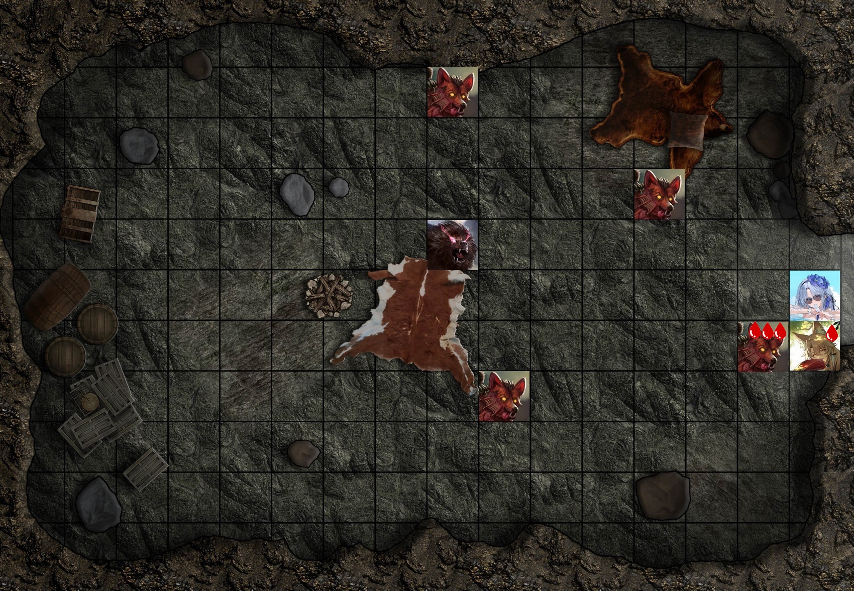 Пусть Кеарак выпьет зелье лечения, а видимо задумавшаяся о чем-то своем Радианта попытается щупальцами добить раненого пса.