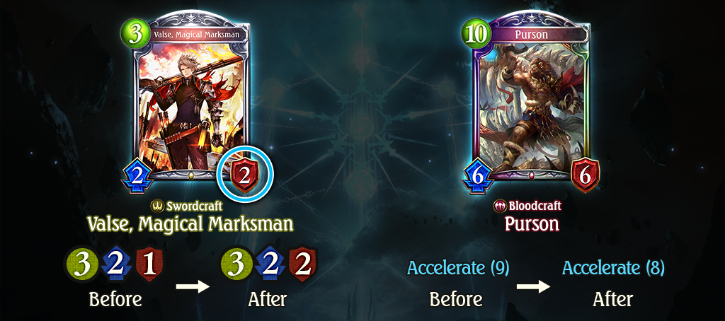 Интересную тенденцию заметил: чтобы придумывать новые эффекты, сугамесам приходится все больше и больше текста писать на своих картонках. На новом Бармаглоте и на рункрафтовской провидице уже столько букв, что шрифт пришлось уменьшать. При этом, например, карт с эффектом а-ля "суппорт кеннон" было уже столько, что эти абилки можно без зазрения совести начать писать в виде "Cannon: 5 damage", экономить кучу места и все бы поняли.