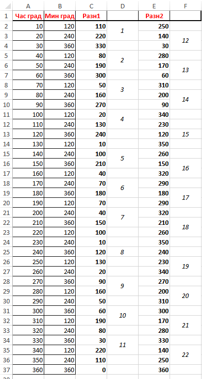 Затем я нашёл сколько раз минутная опережает часовую на 240o.