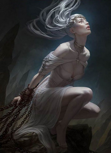 Вслед за дамой сделала шаг вперед и жрица, облаченная в странноватое для столь важной особы платьице. Вероятно, ее дар школы Яда подавлен, да и оружия кроме цепей при ней нет. Чем же тогда она собиралась сражаться? Извращенная, прошедшая через черное внимание ненавидящих Церарию рыцарей, эта жрица явно много страдала.