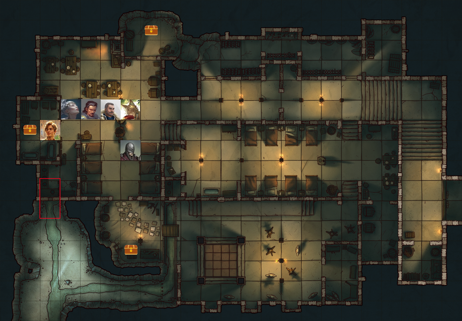 Деревос с двумя отмычками от капитана Акорена отправляется к верхнему сундуку, Альбрехт же со своими атакует центральный.