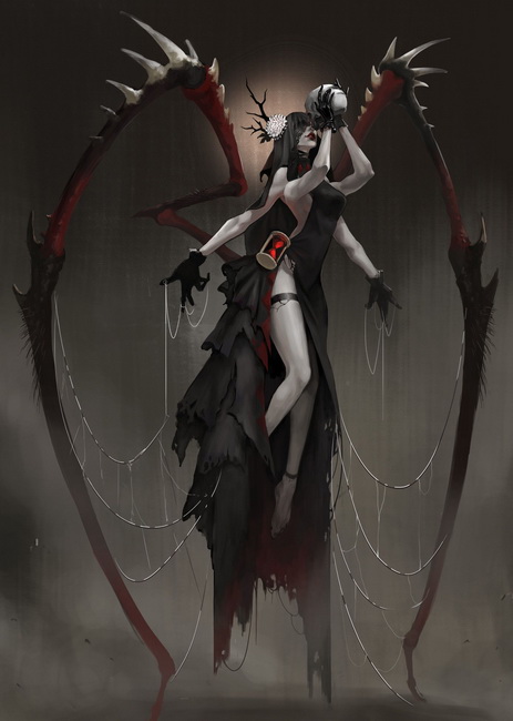 После этих слов из-за трона госпожа выползло чудноватое существо, похожее на женщину с лишними конечностями, как руками, так и некими лапами или клешнями. Встав на ноги и выпрявшись в полный рост, оно оказалось довольно привлекательным, но агрессивным и хищным, слабо похожим на каиши или северянина. Но, вероятно, все же разумным.