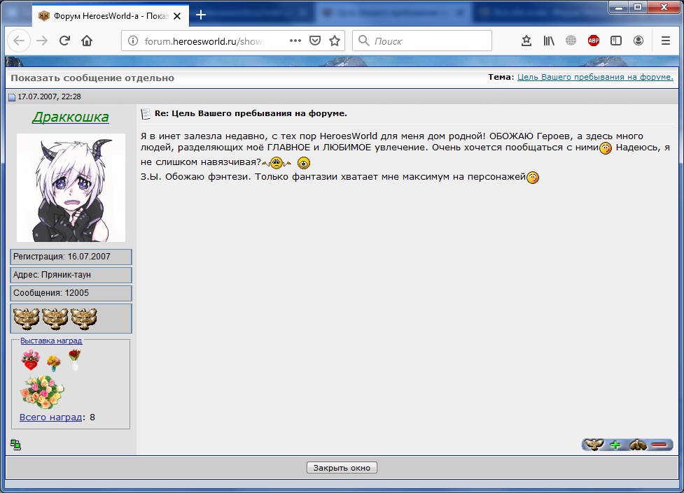 Жесть, не знал, что ты уже в 2007 была в курсе этого персонажа. По-моему, тогда ещё и ШВ не было, только Хроники Багамута, так что это максимально олдфажно.